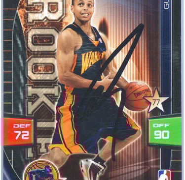 We sell authentic memorabilia, including NBA cards with on-card, in-person autographs.