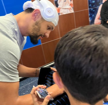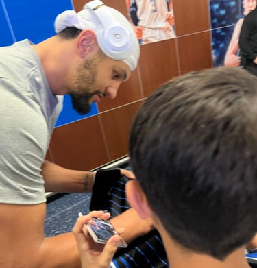 As stated in the disclaimer, we share photos of the experiences we had getting your card signed on this site and on our social media pages. Who knows, a video or picture of your actual card may be among the posts. These photos are not meant to be an endorsement or affiliation of our company by the athlete celebrity (we wish that were the case, lol). We post them as a means of sharing the journey of your card with you and sharing our experience in getting the autograph for you.